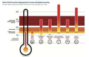 “The world has entered a new reality. Global warming will soon exceed 1.5°C. This puts humanity in the danger zone where multiple climate tipping points pose catastrophic risks to billions of people. Already warm-water coral reefs are crossing their thermal tipping point and experiencing unprecedented dieback, threatening the livelihoods of hundreds of millions who depend on them. Polar ice sheets are approaching tipping points, committing the world to several metres of irreversible sea-level rise that will affect hundreds of millions.”