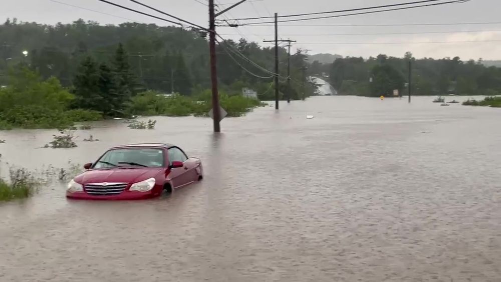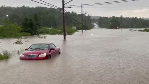 No-name storm in Nova Scotia on July 22, 2023 Bluewater Rd intersection with Hammonds Plains Rd. . Photo and related video (on facebook) by Kelly Regan. The white object is the roof of a communications cable van.