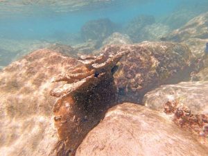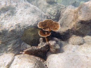 Over the years 2023 ,2024 and 2025 I documented 8 specimens on this breakwater. Some, particularly those on the top of the breakwater, are not readily observed much of the time becausemof being slightly hidden, and/or because wave action on top of the breakwater and it’s shallowness makes access there difficult. Thus a particular specimenwas observed only in some years – the “surveys” were very informal, e.g. simply snorkelling the outside of the breakwater and photographing any elkhorn coral sighted. On only a couple of dates was I able to examine the top of the breakwater.
