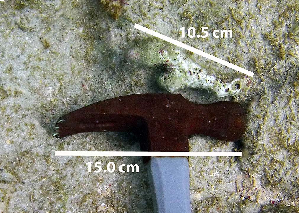 Photos of A prolifera specimens at Vauxhall Reef on Mar 14, 2015.“Specimen 1” photos are within the “Mother Colony”, location shown at right. This large mass of A. palmata likely developed by fusion and growth of individual colonies.