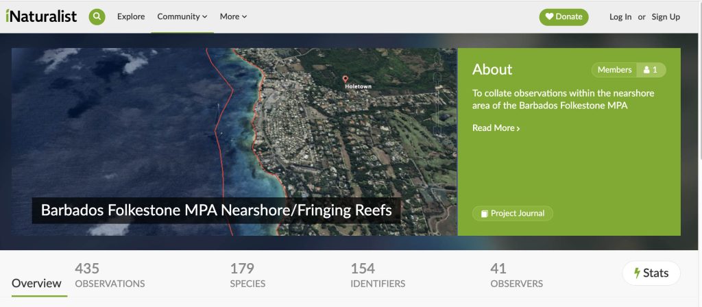 CURRENT STATS for the iNaturalist Project “Barbados Folkestone MPA Nearshore/Fringing Reefs“, Sep 27, 2025