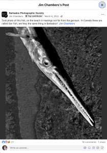 – Search “Gar Fish” or Garfish + Barbados on Social Media