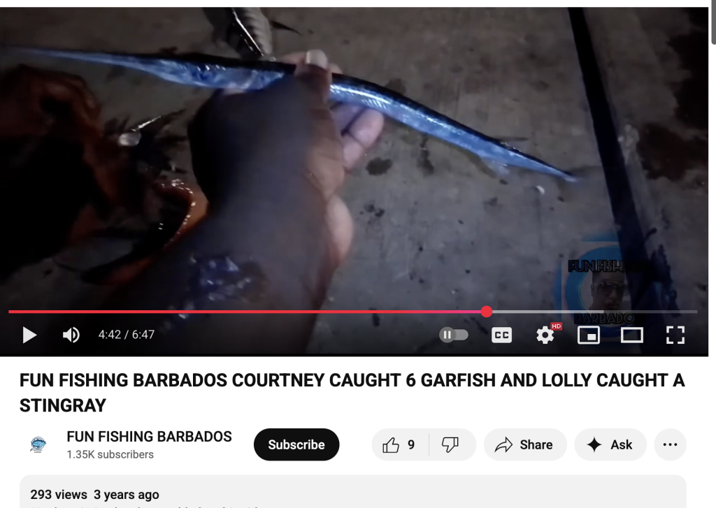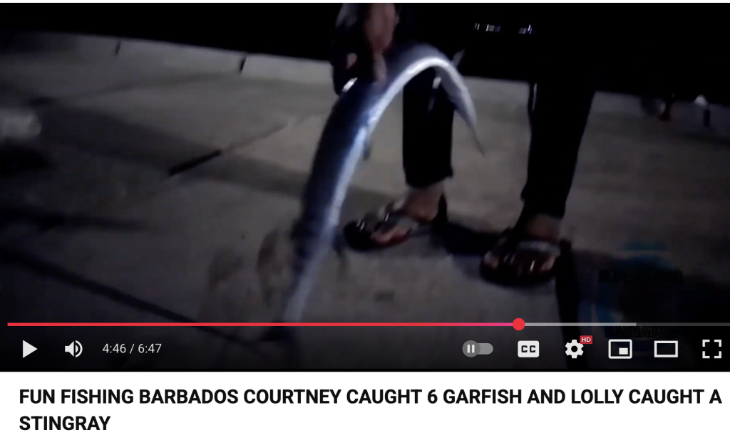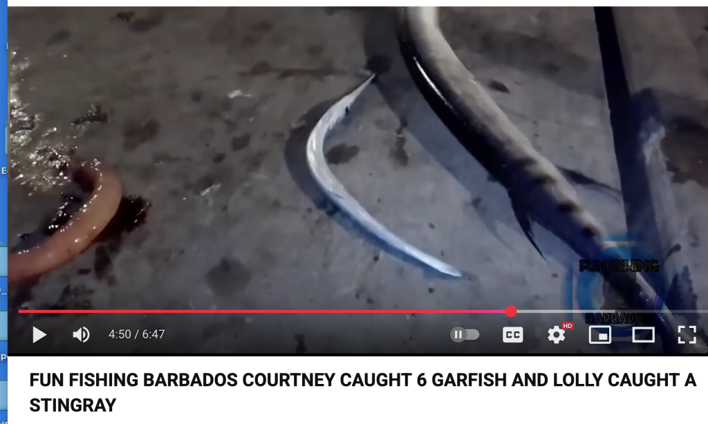 From: FUN FISHING BARBADOS COURTNEY CAUGHT 6 GARFISH AND LOLLY CAUGHT A STINGRAY (YouTube Video 2022)