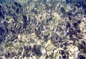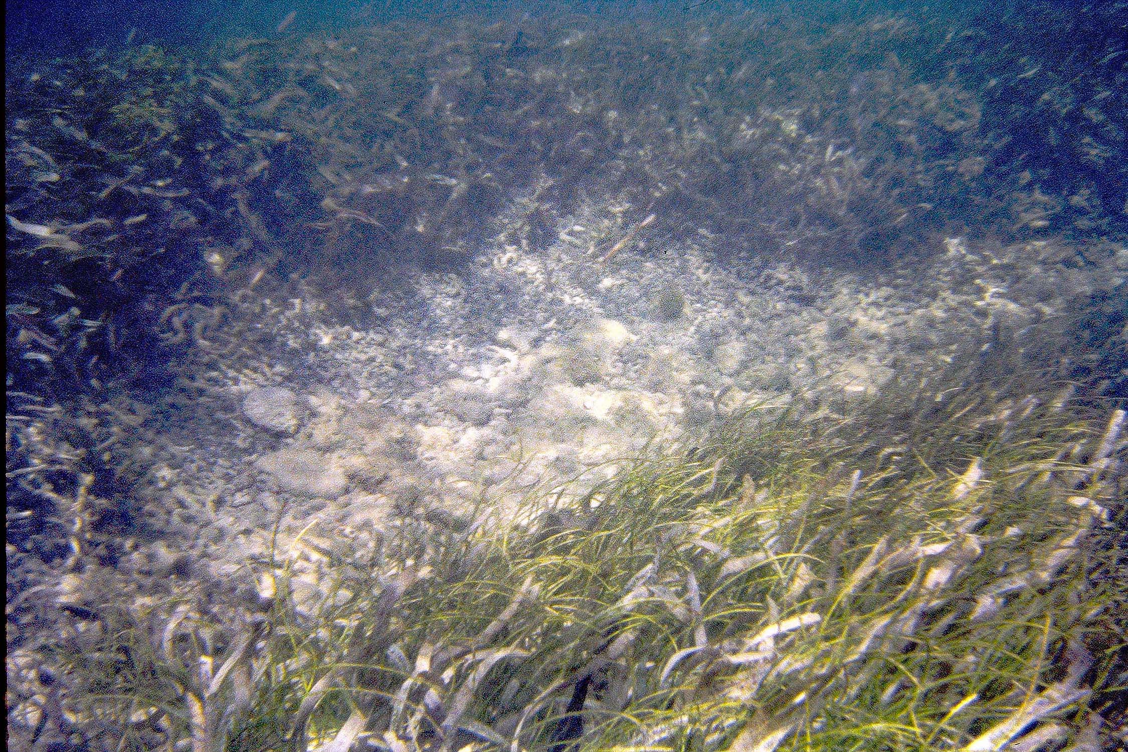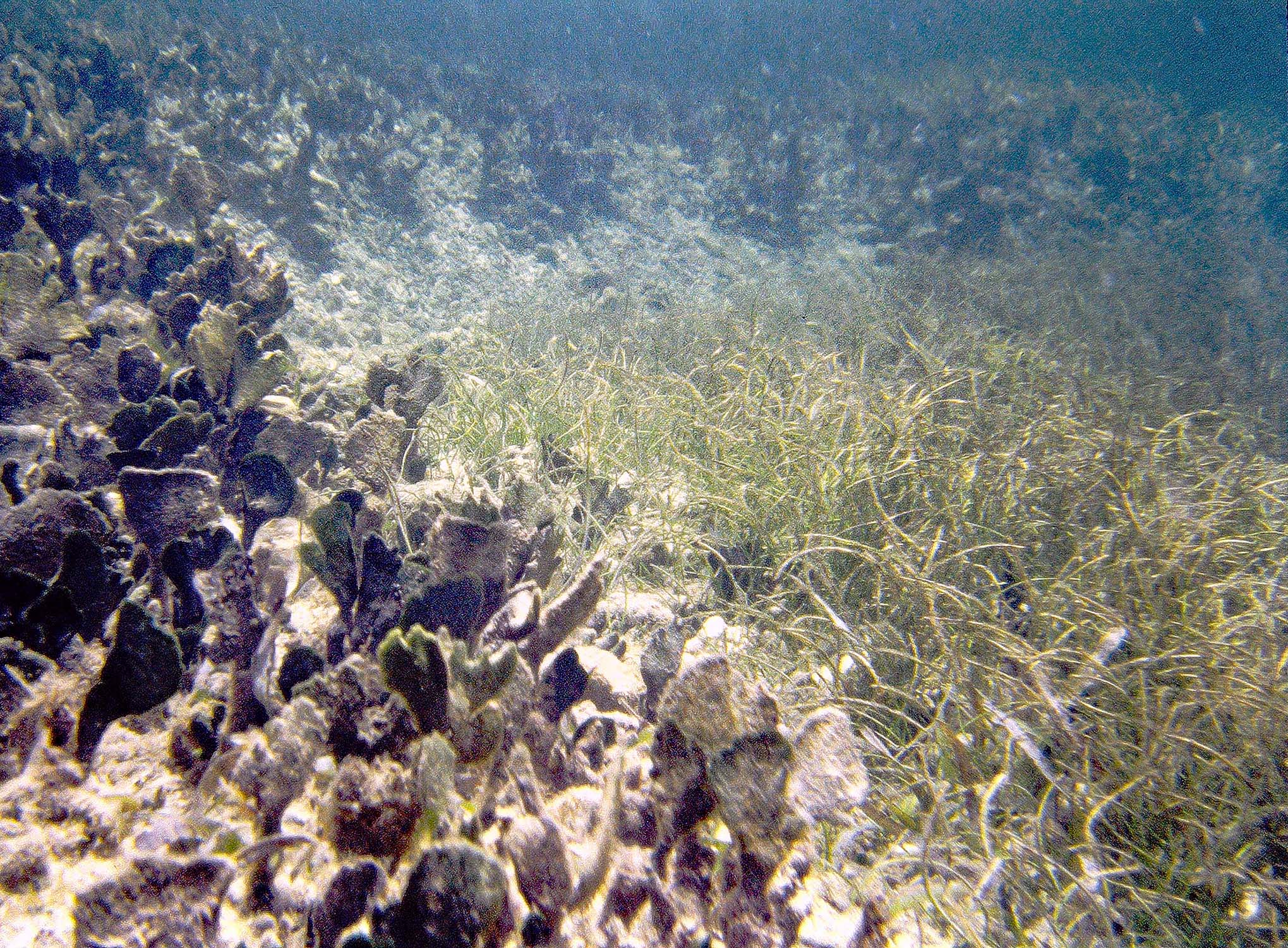 ![]() Pic 5. Erosional Scarp in mixed Thalassia-Syringodium stand (patch, area), on Predominantly Sand substrate. |