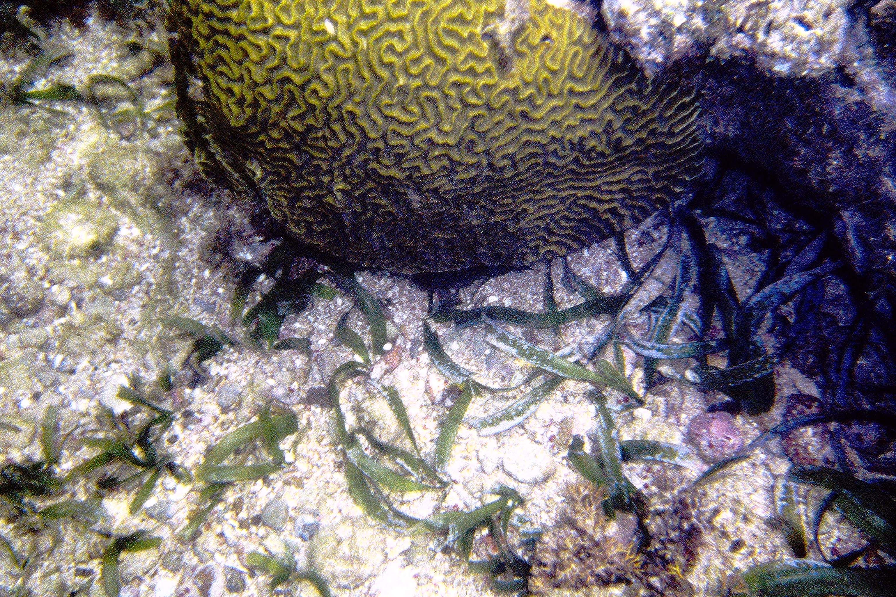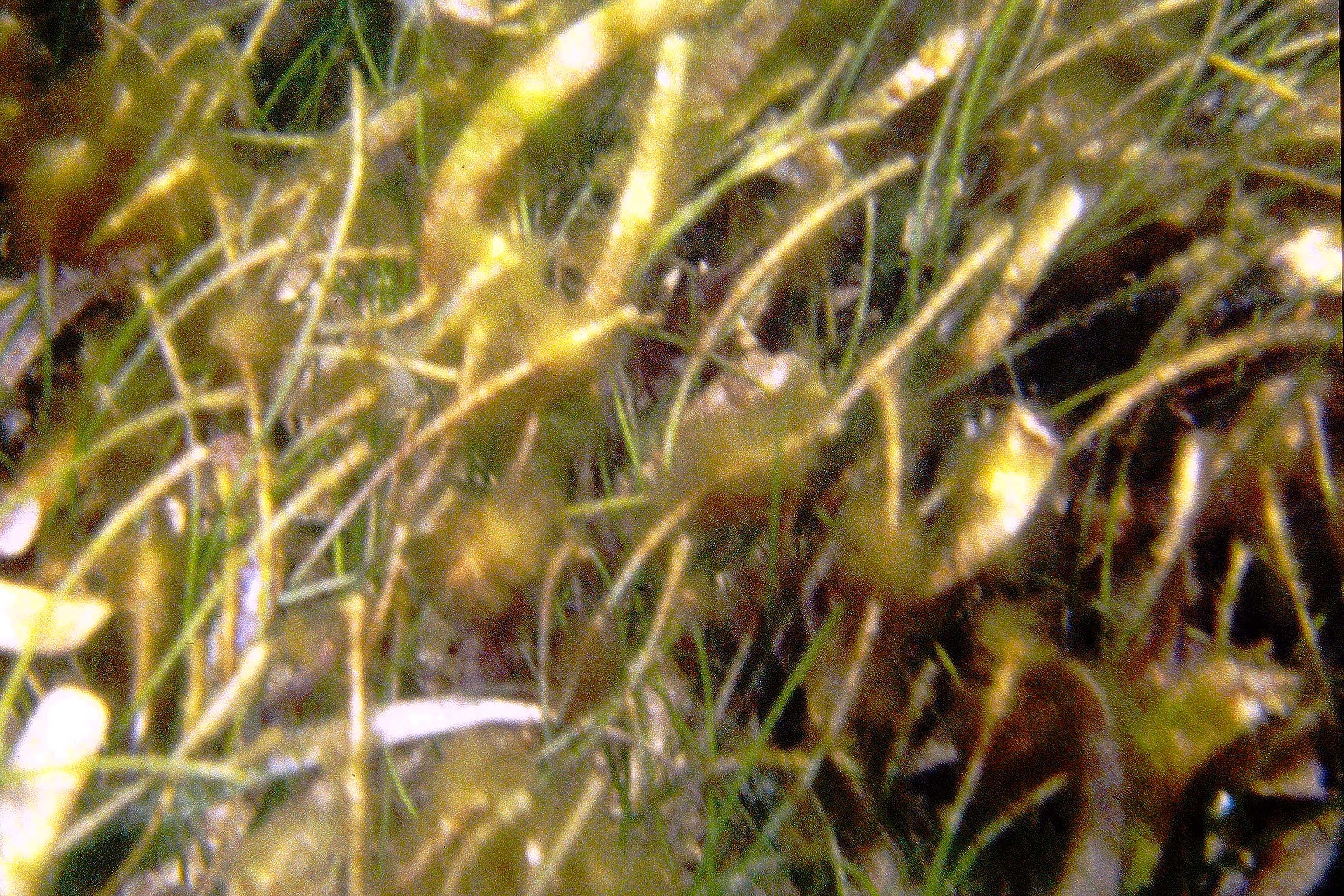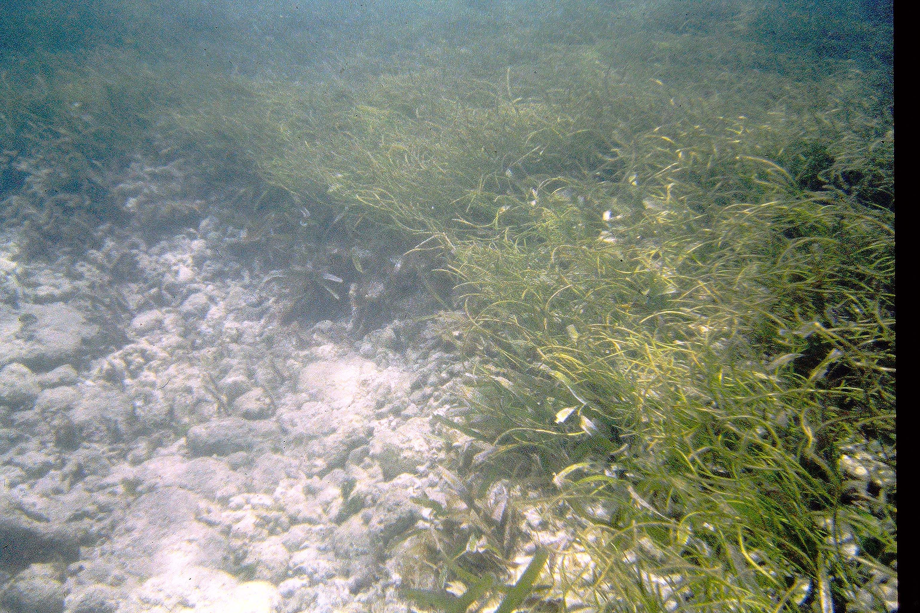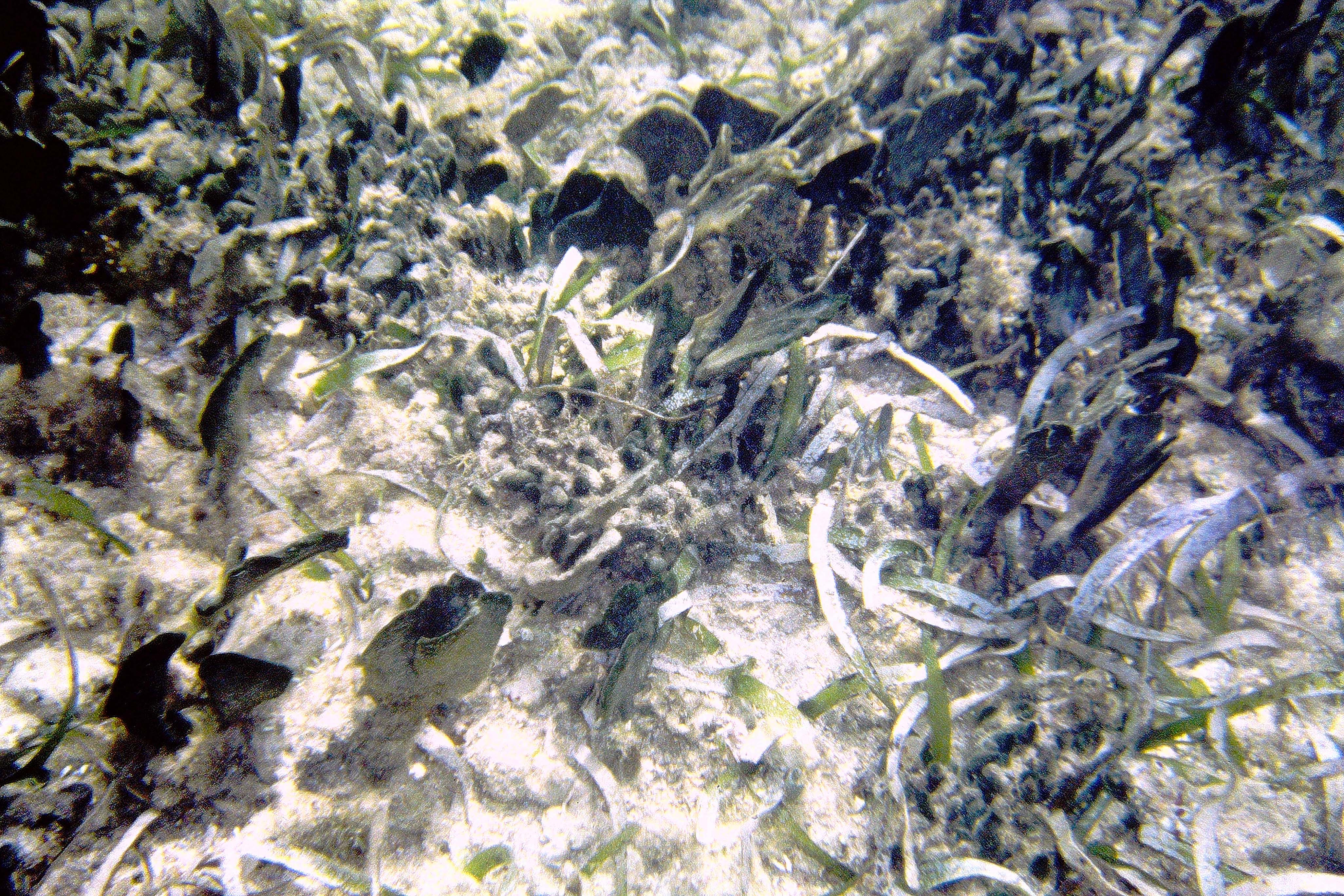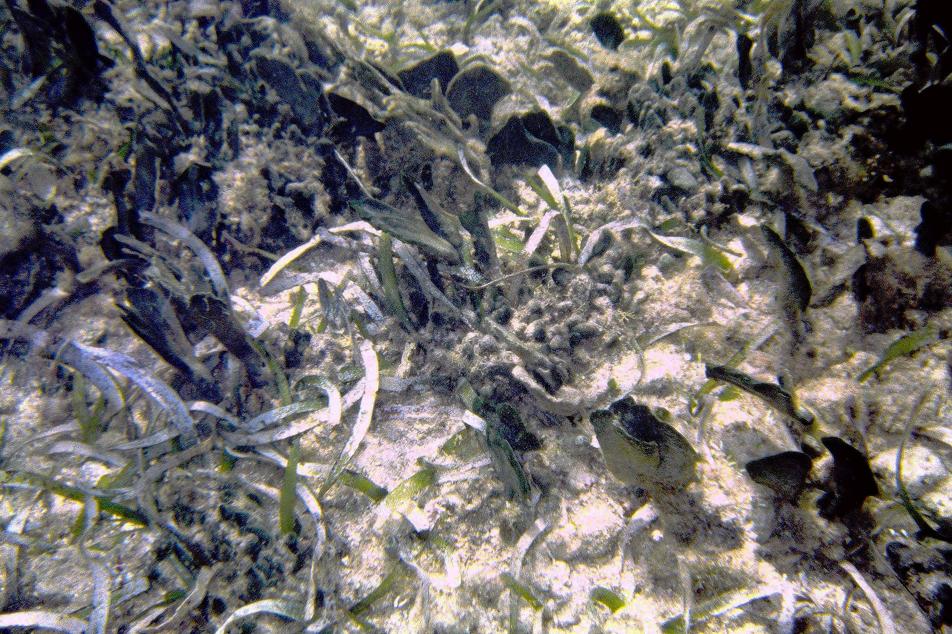 Another pic in a patch of mixed Thalassia-Syringodium with excessive growth of flashy algal epiphytes |