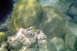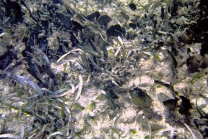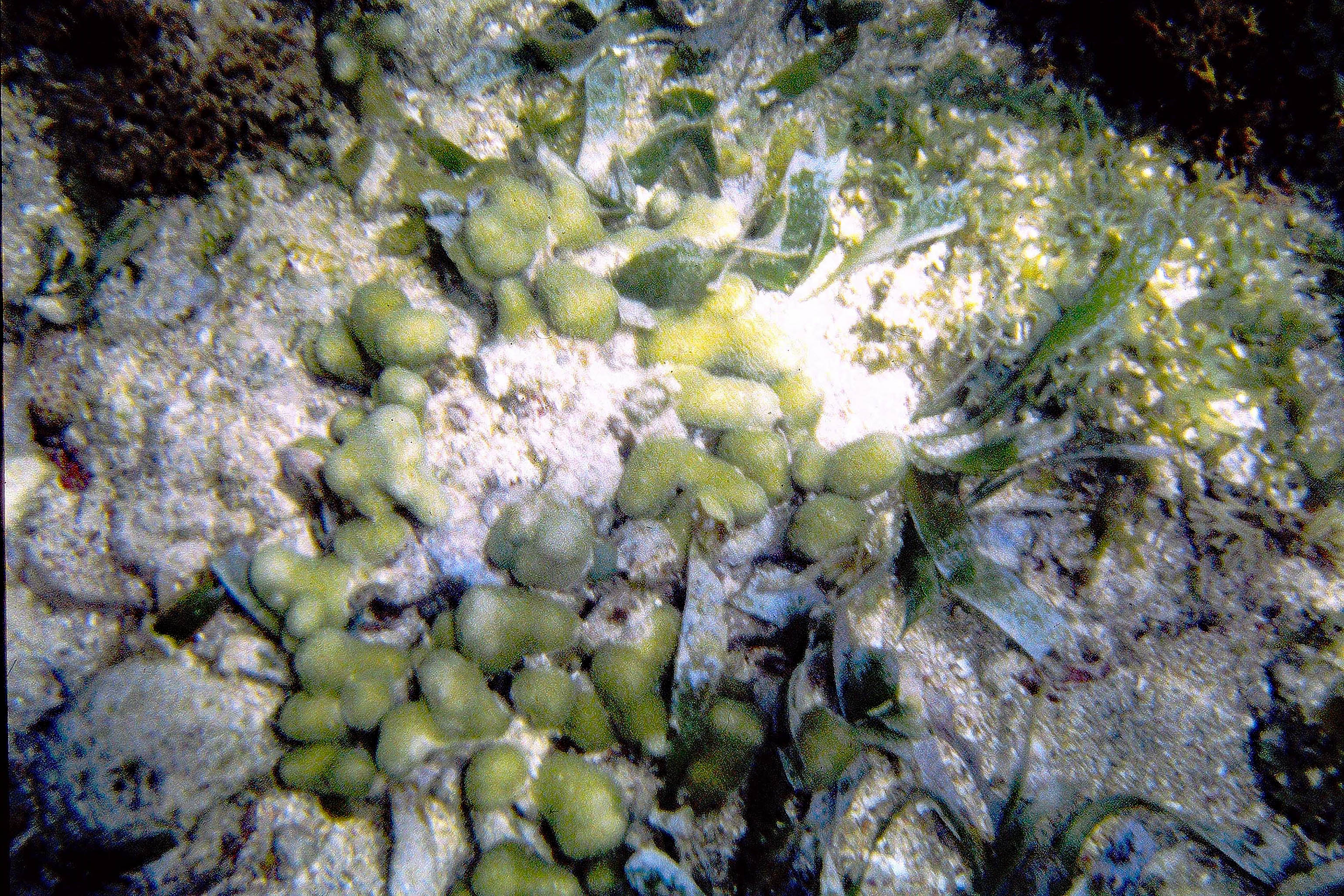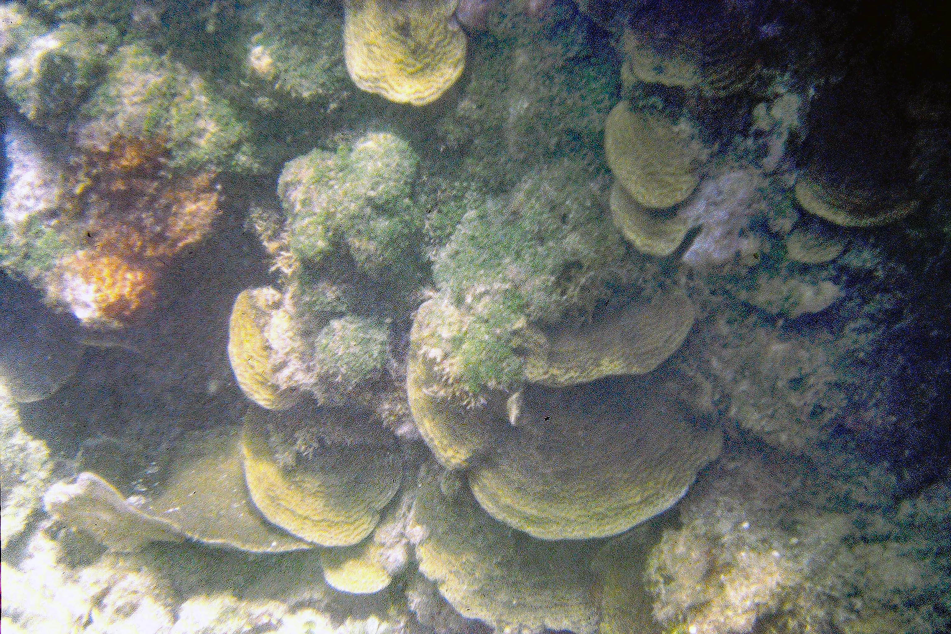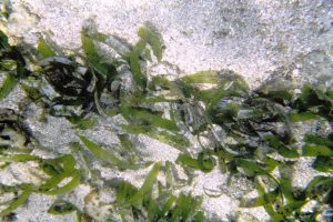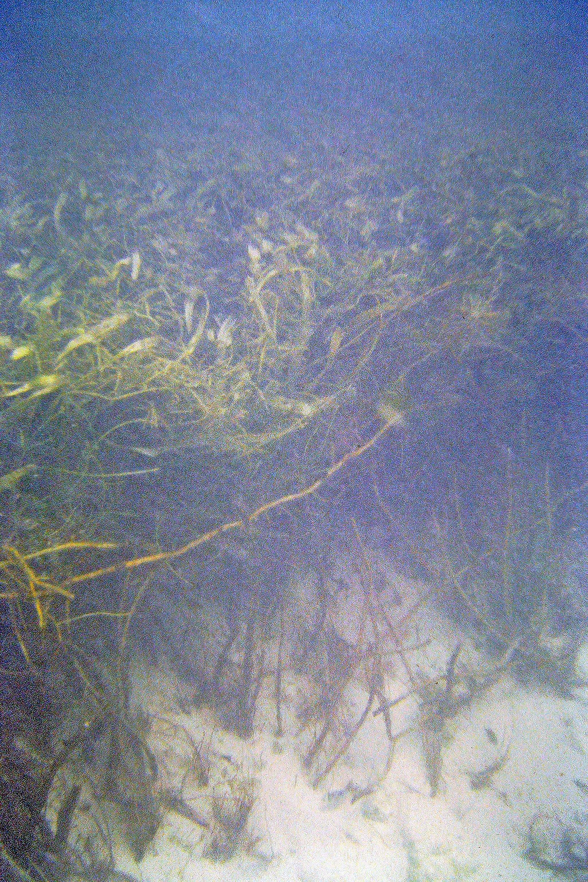Patch of mixed Thalassia-Syringodium with excessive growth of flashy algal epiphytes; it was a fairly restricted area, ‘wondered at the time if it was related to upward movement of nutrient rich groundwater |