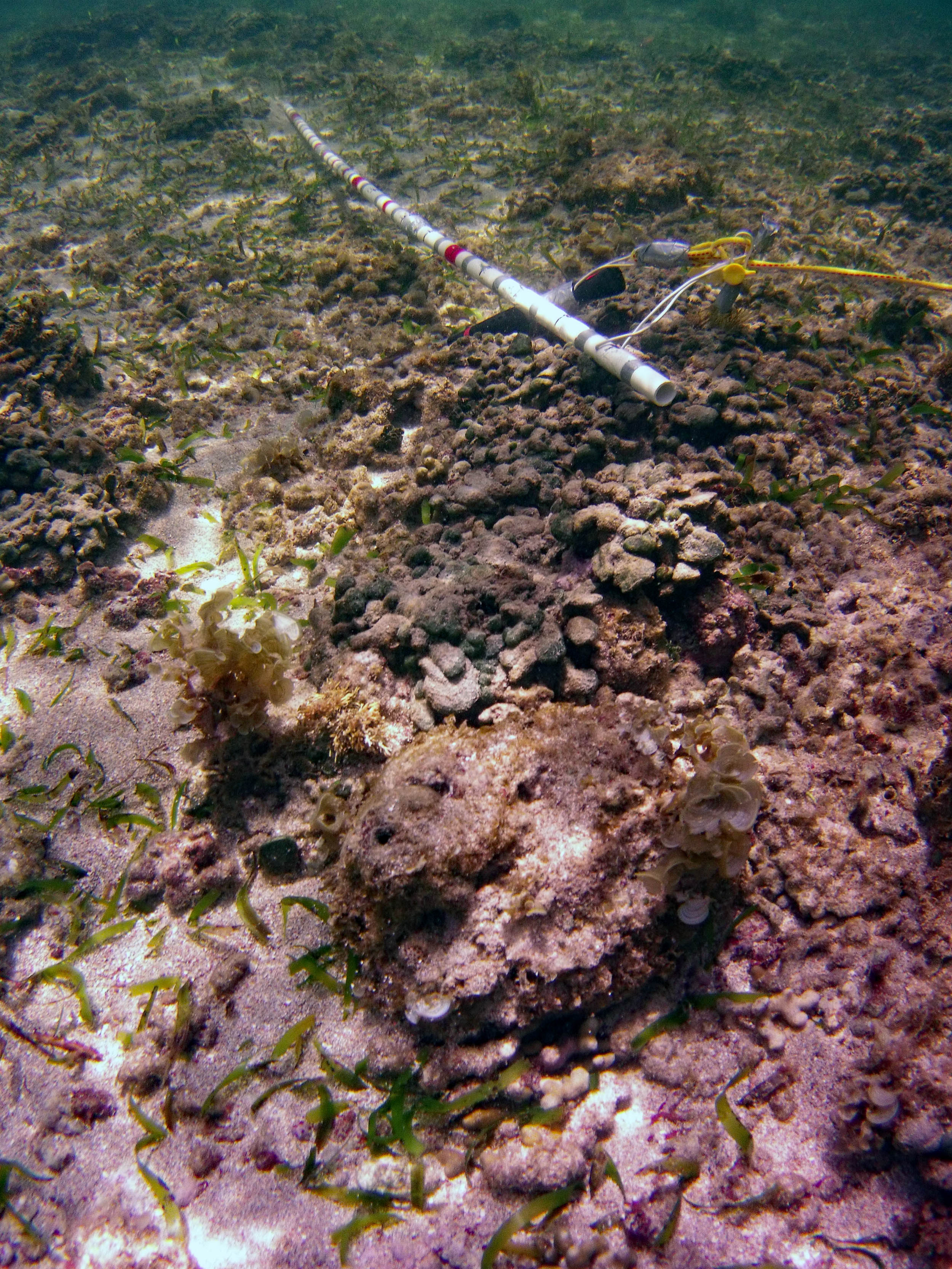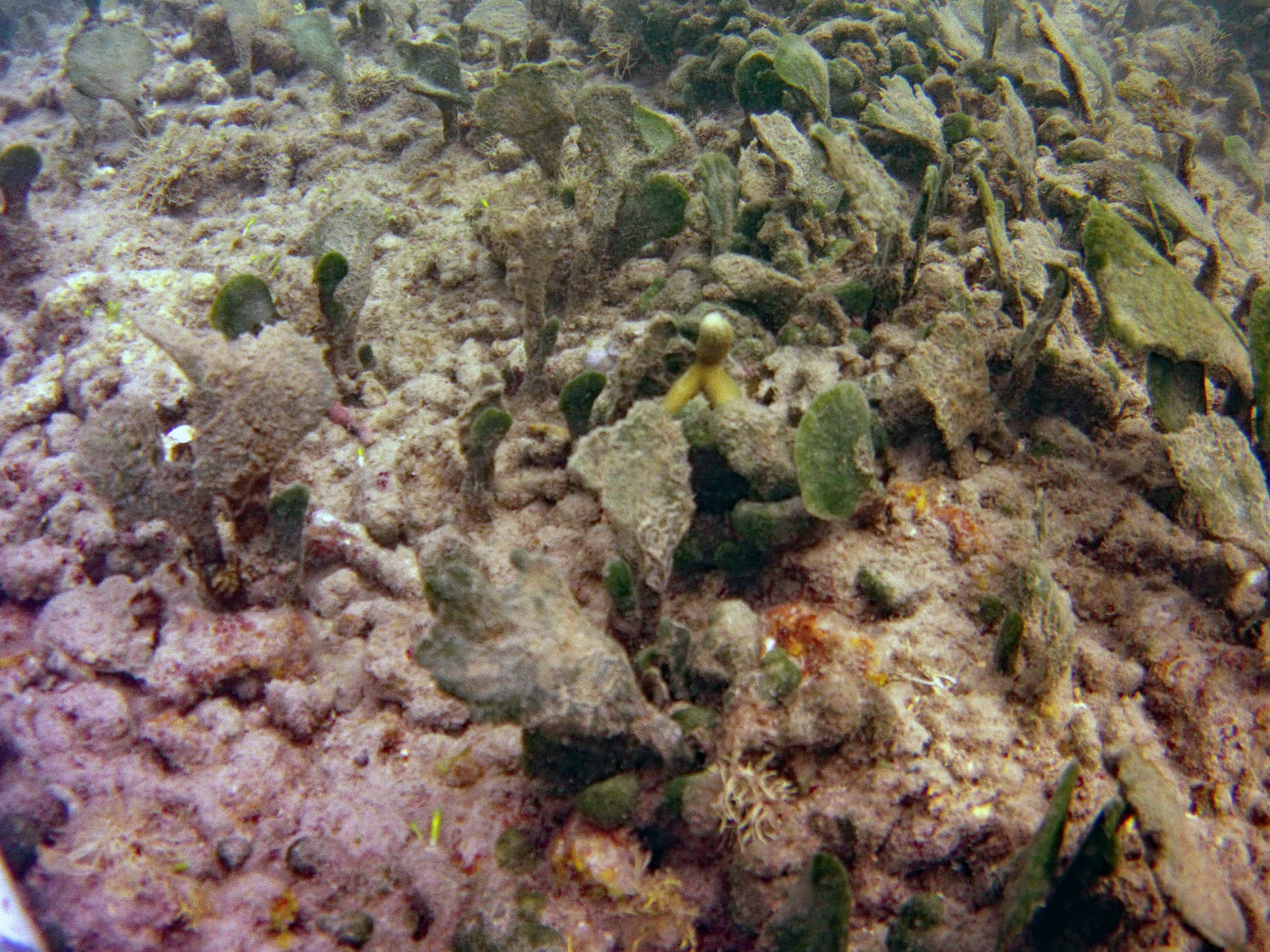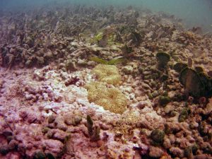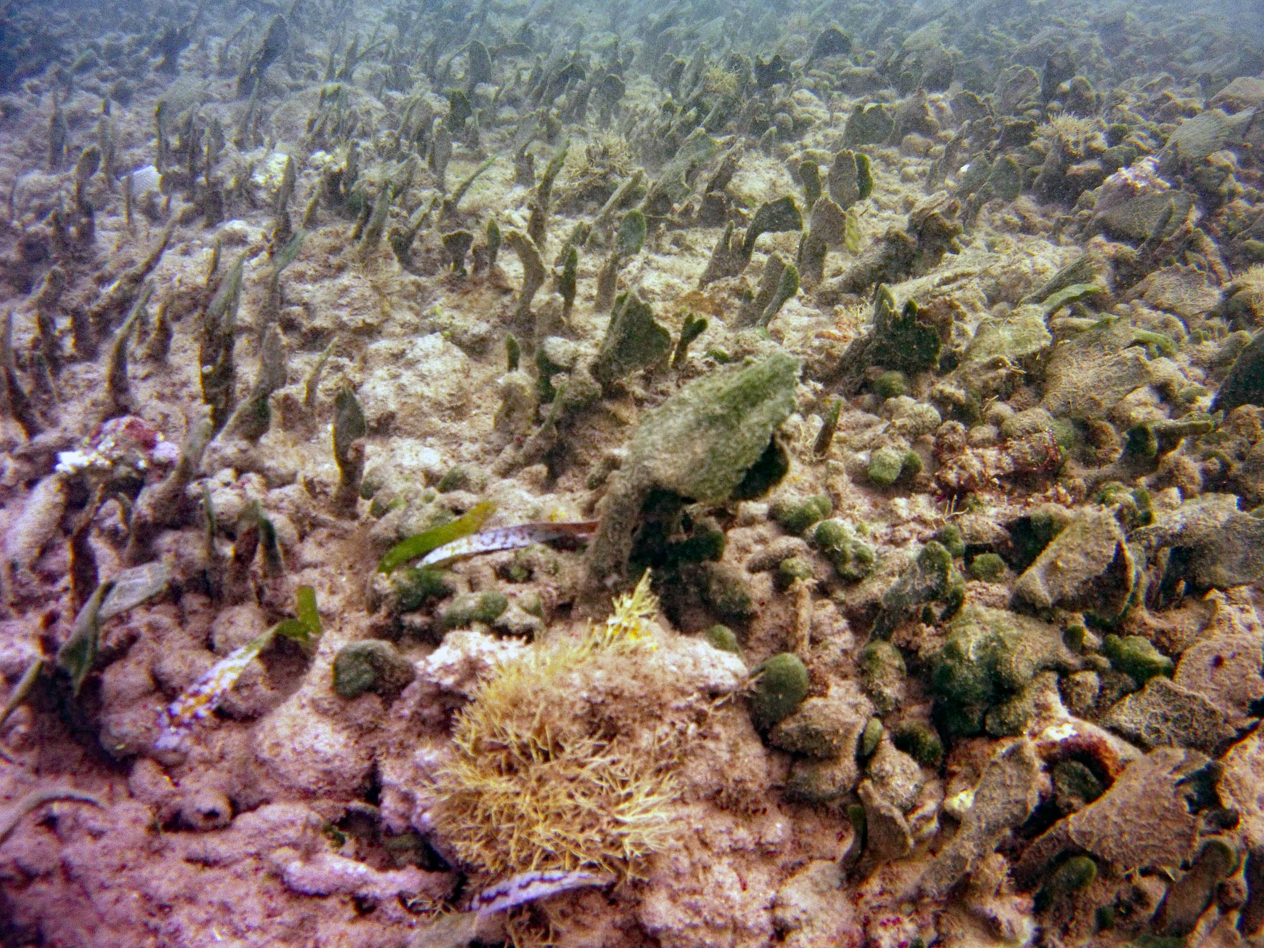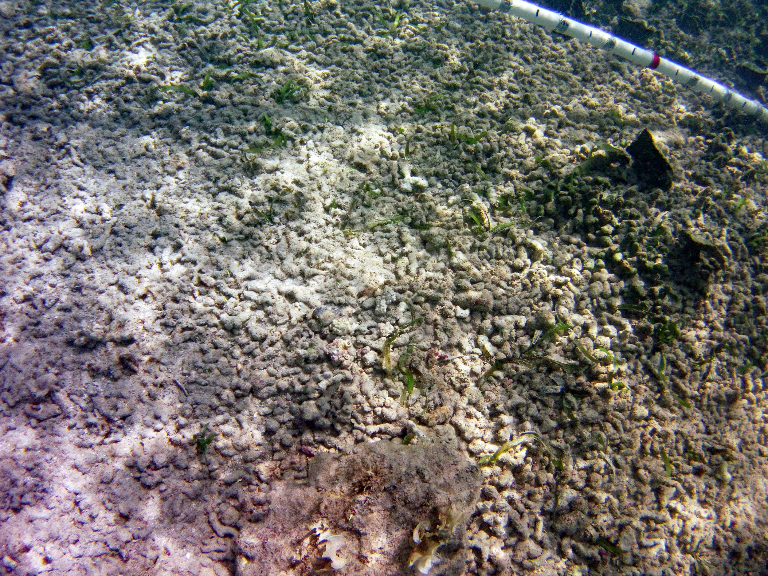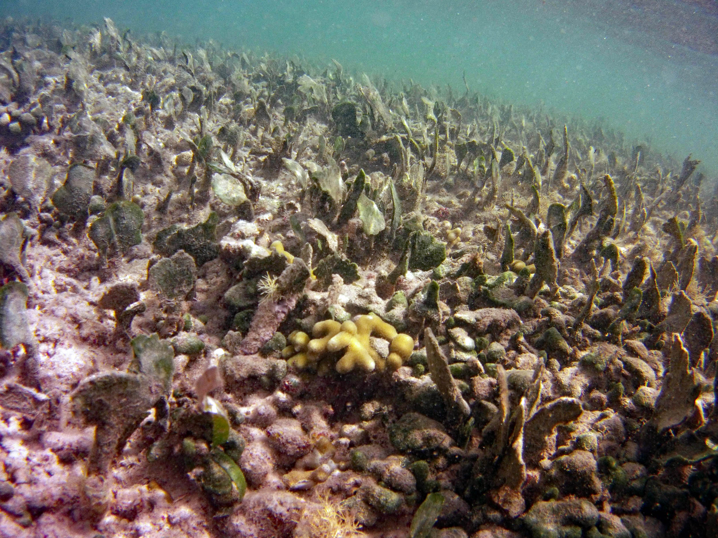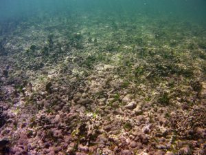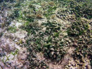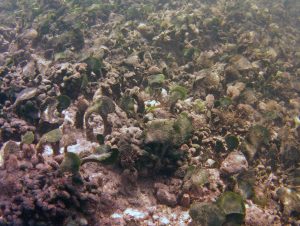 From the field notes for the Transect at the final point on the transect (85S, 187 m): “A lot of rubble cemented together Pf [Porites furcata] etc PHOTOS*** 468-519 series, 509 on way back” The only photos that are retrievable are those below, most at 85S.