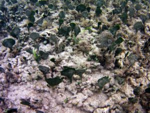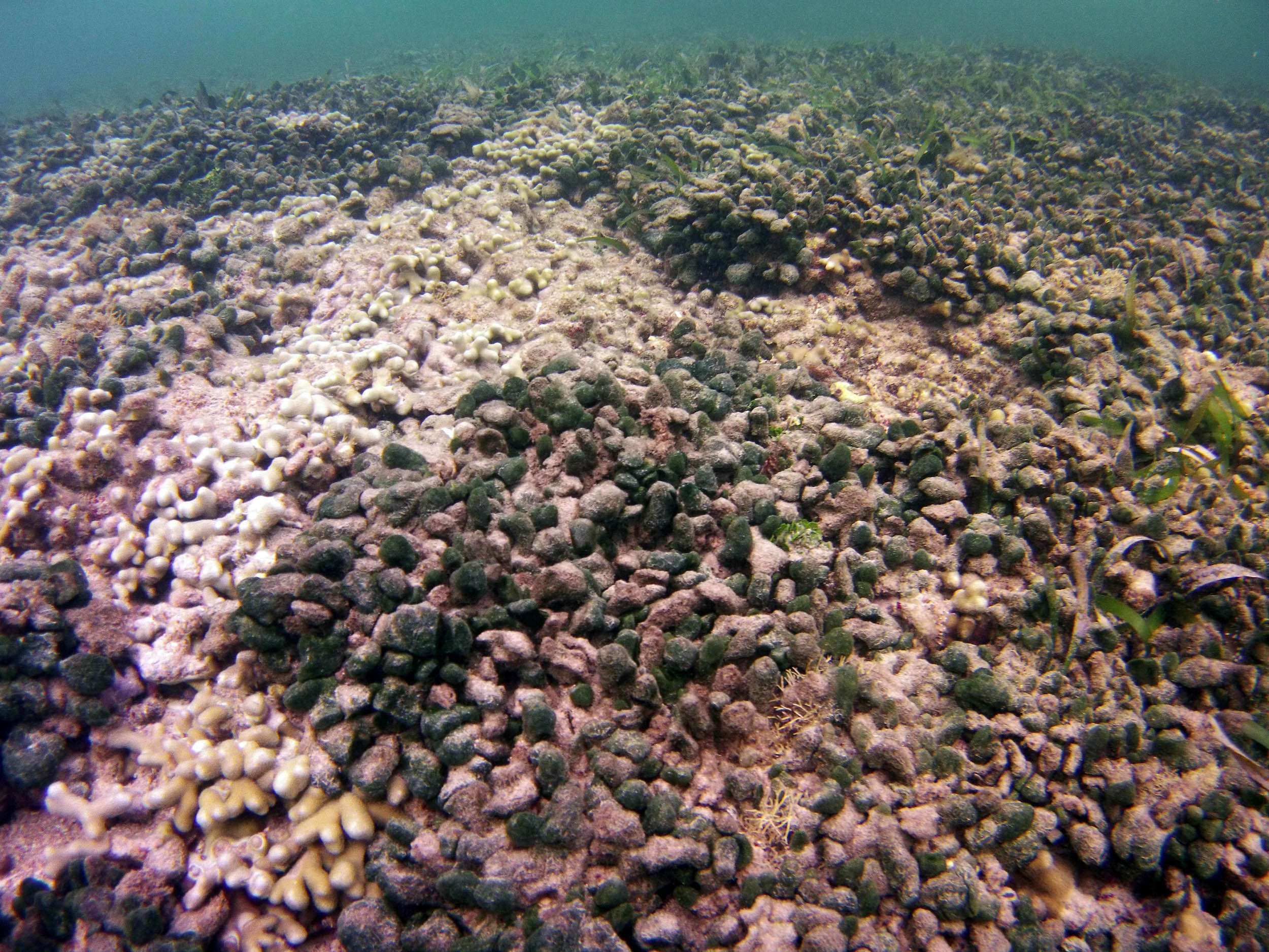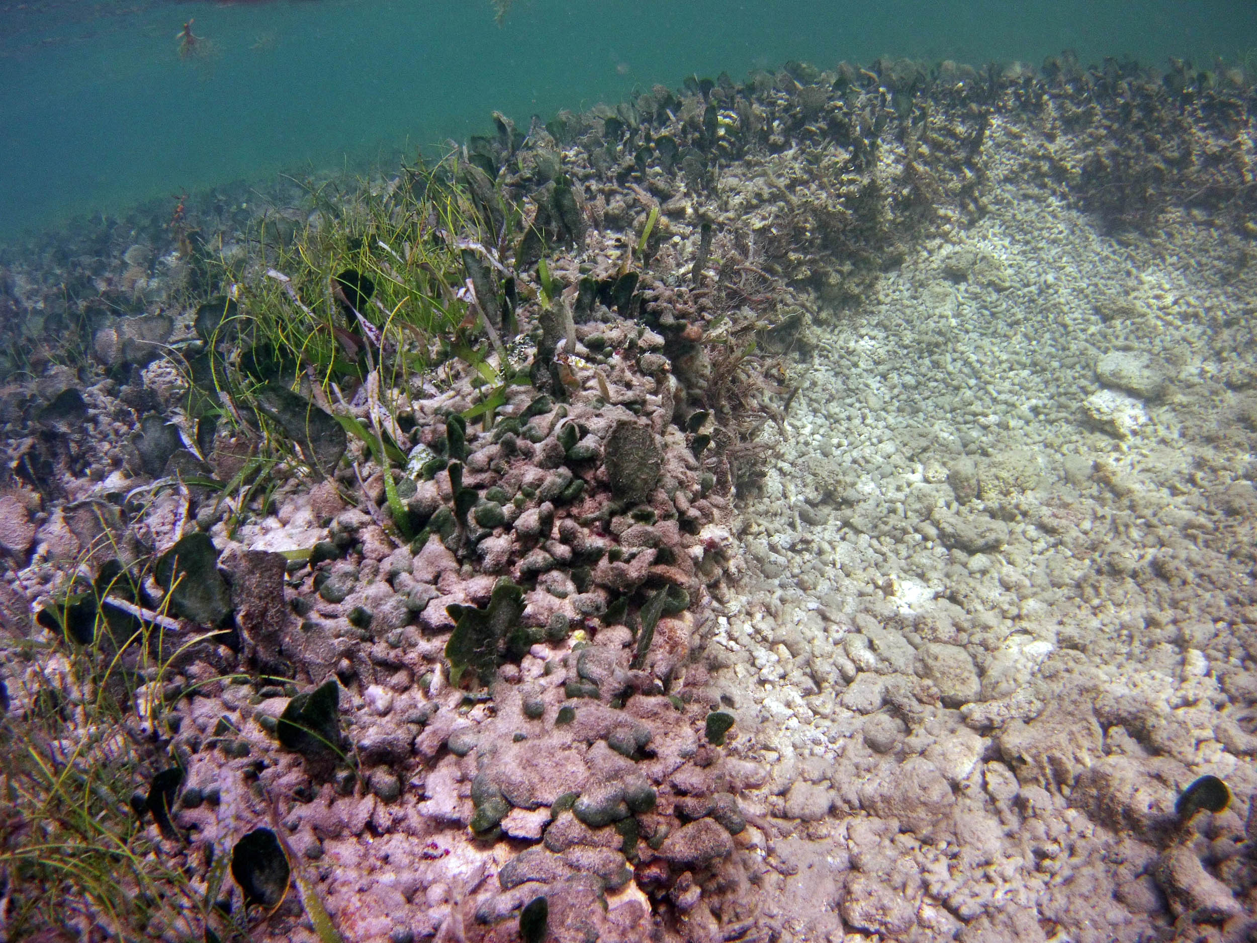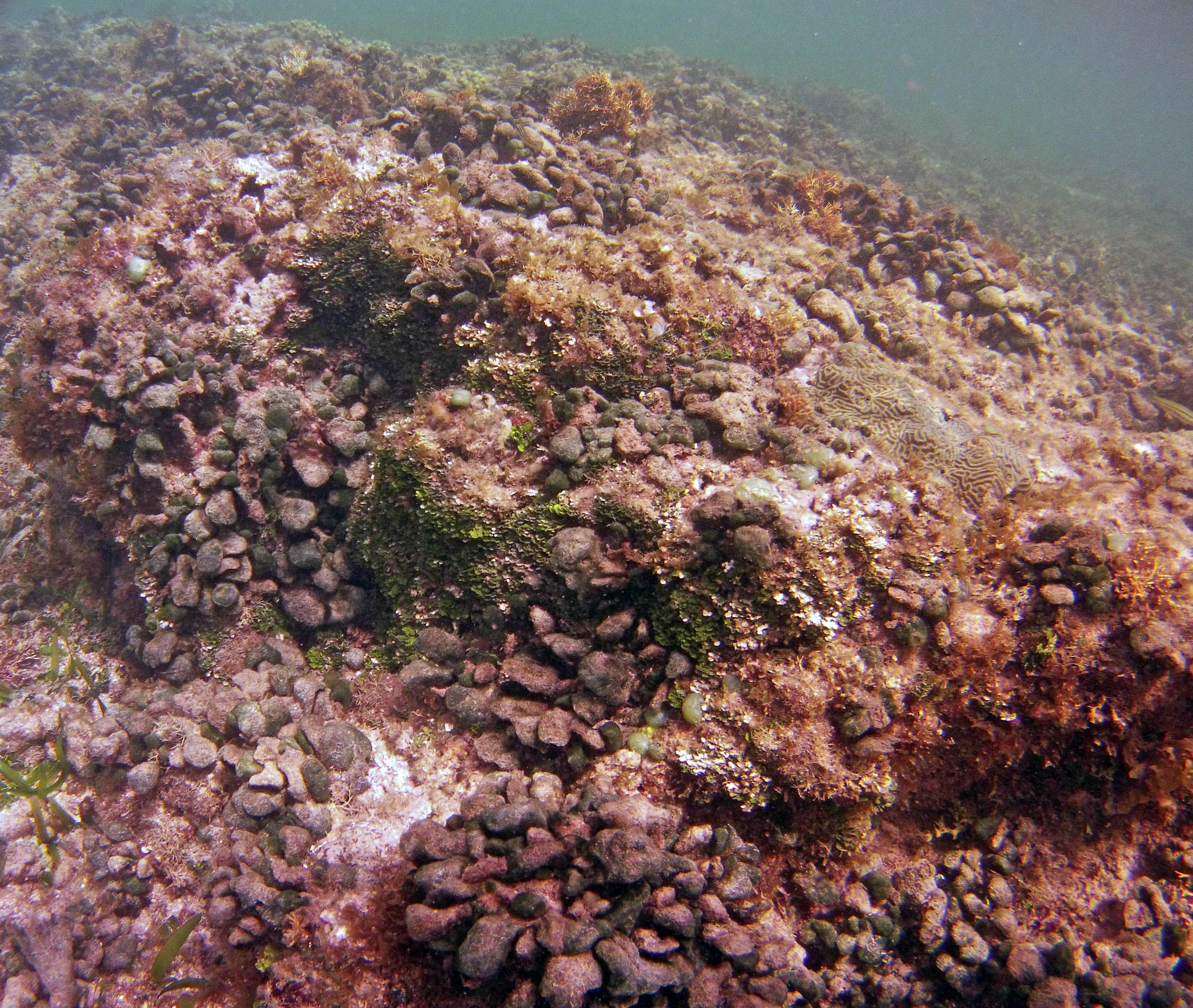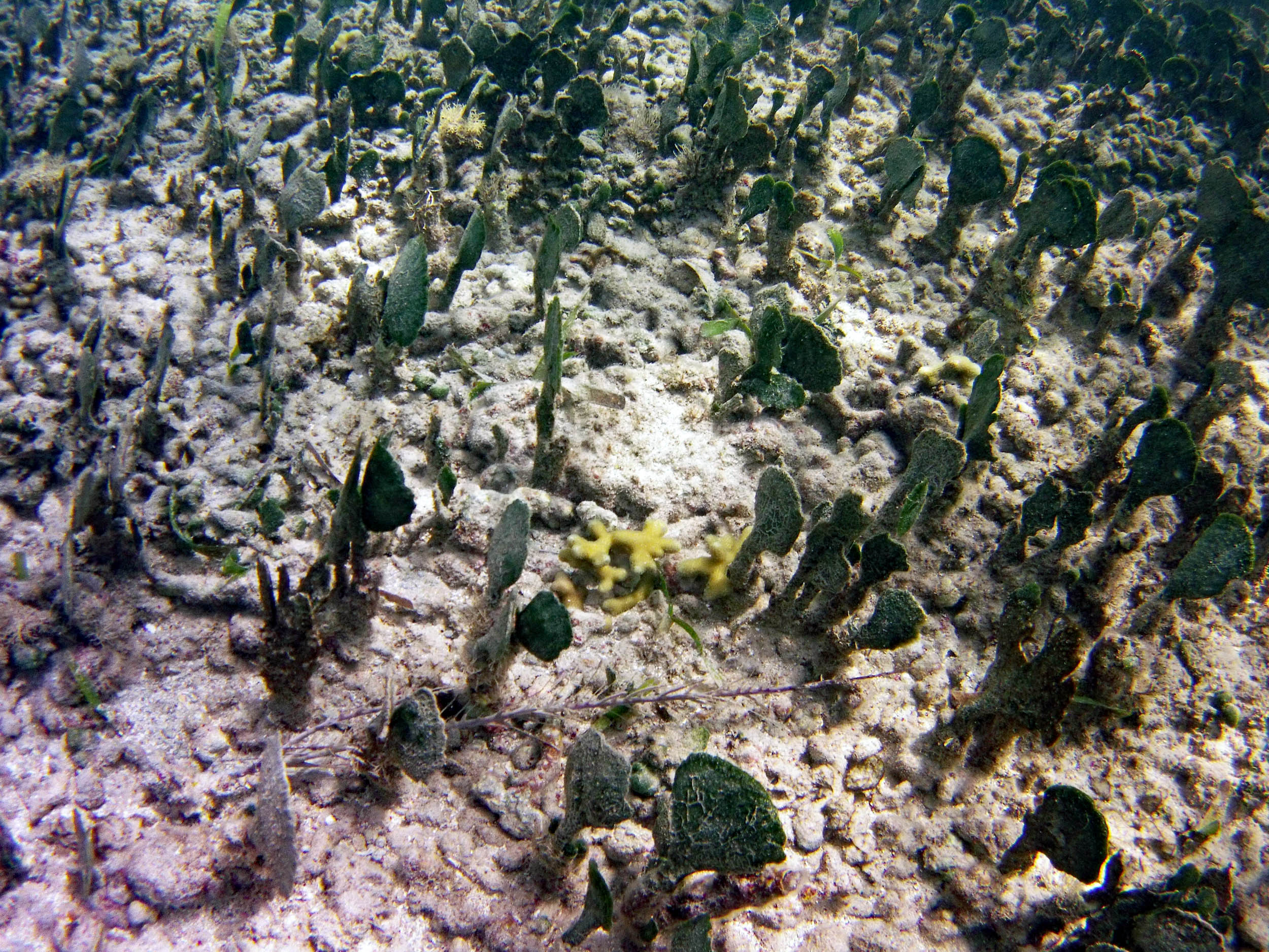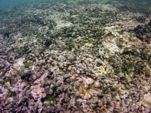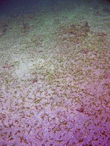 From the field notes for the Transect at the final point on the transect (85S, 187 m): “A lot of rubble cemented together Pf [Porites furcata] etc PHOTOS*** 468-519 series, 509 on way back” The only photos that are retrievable are those below, most at 85S.