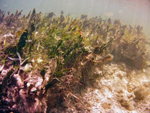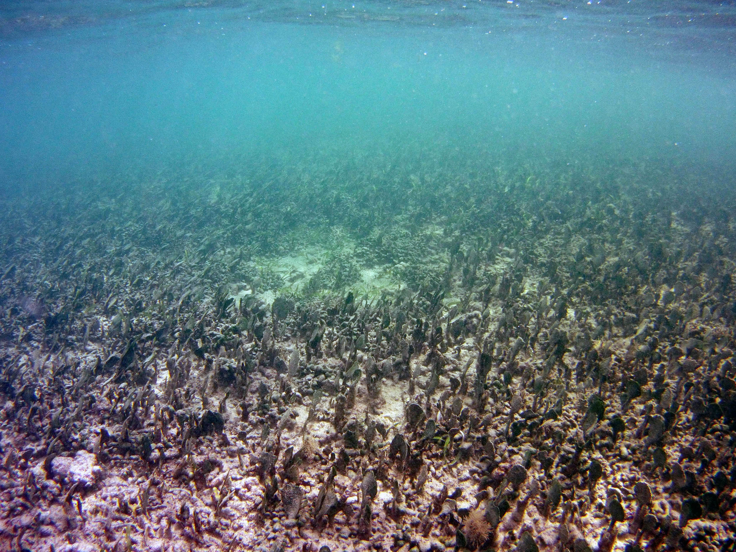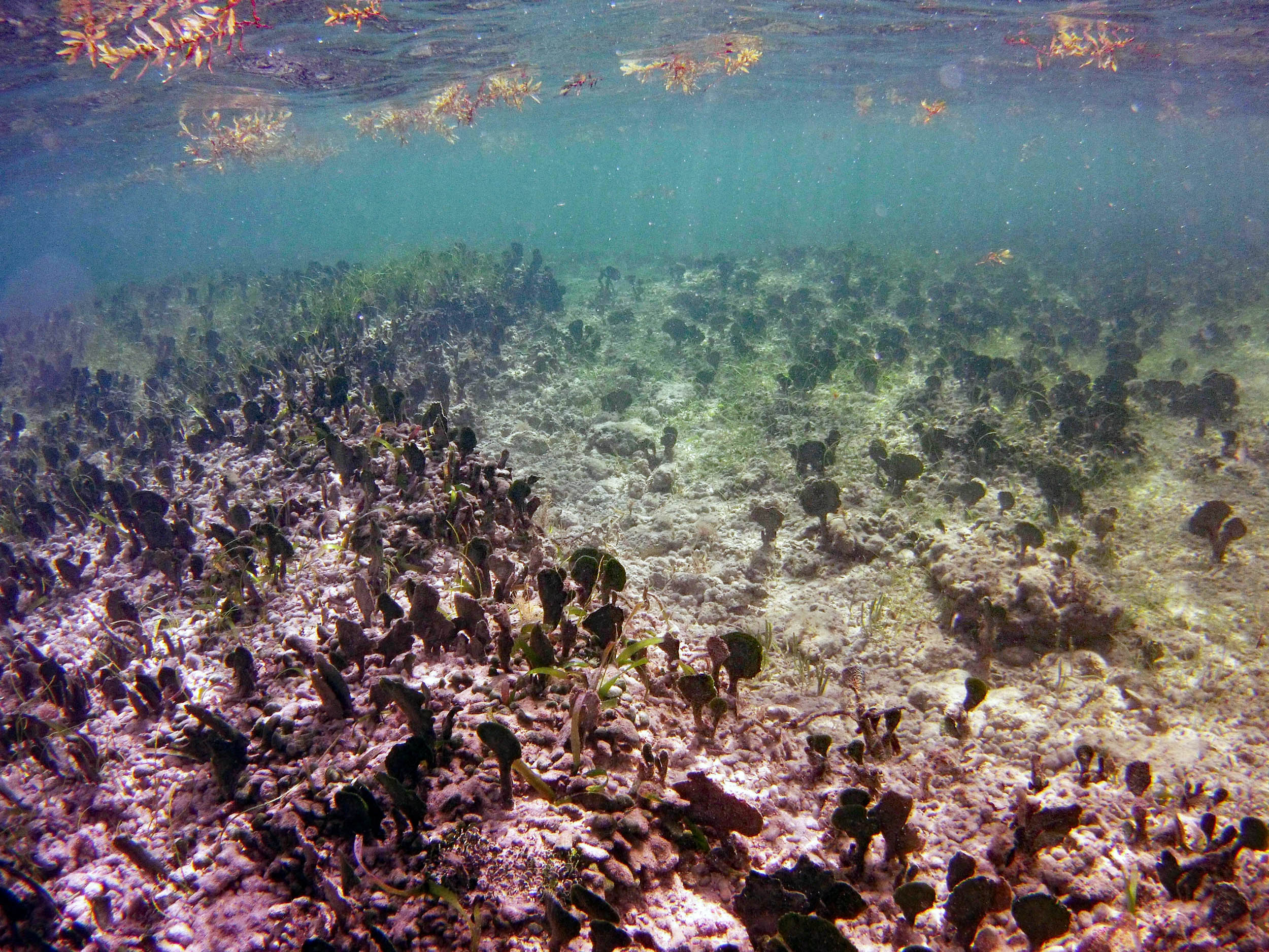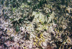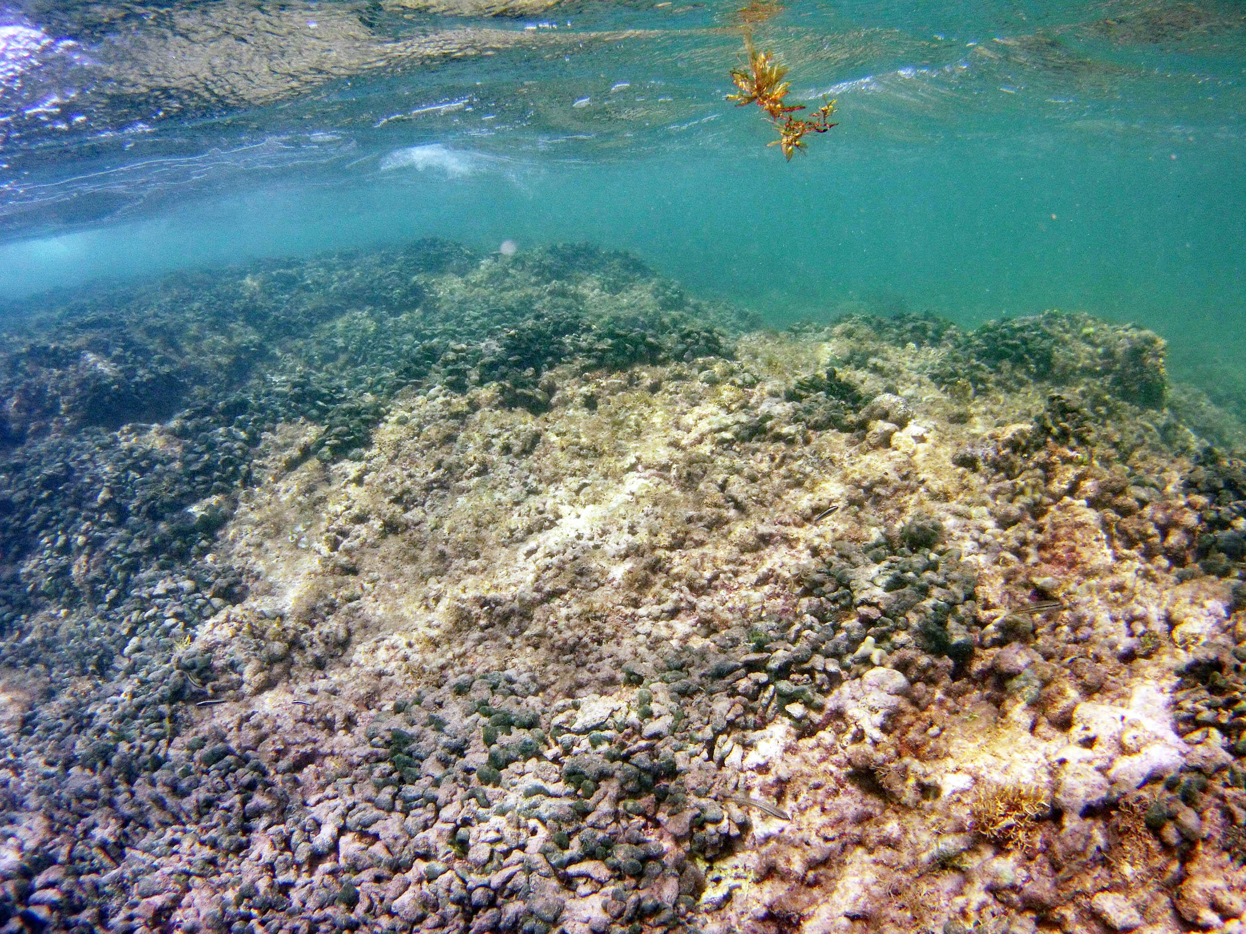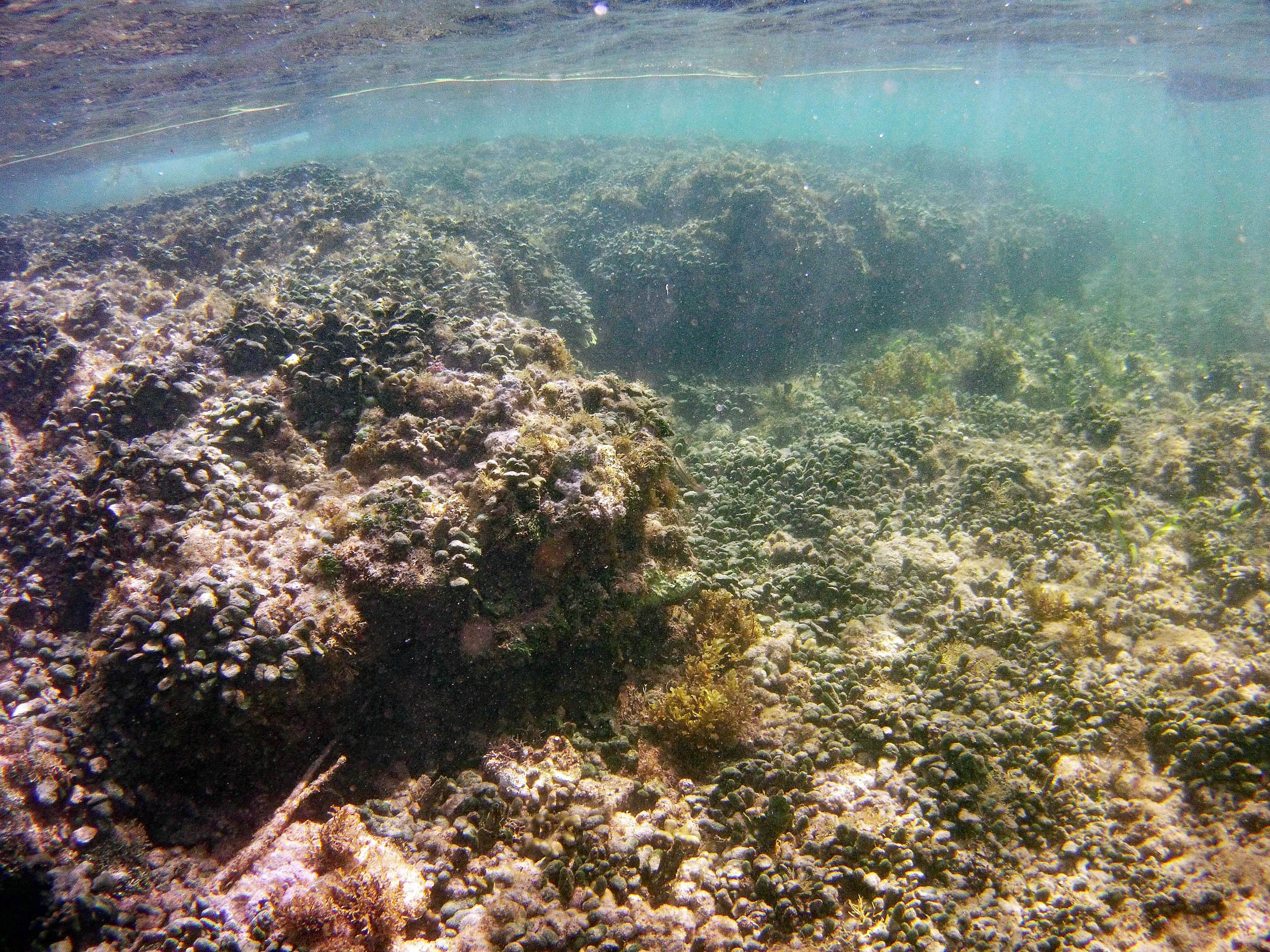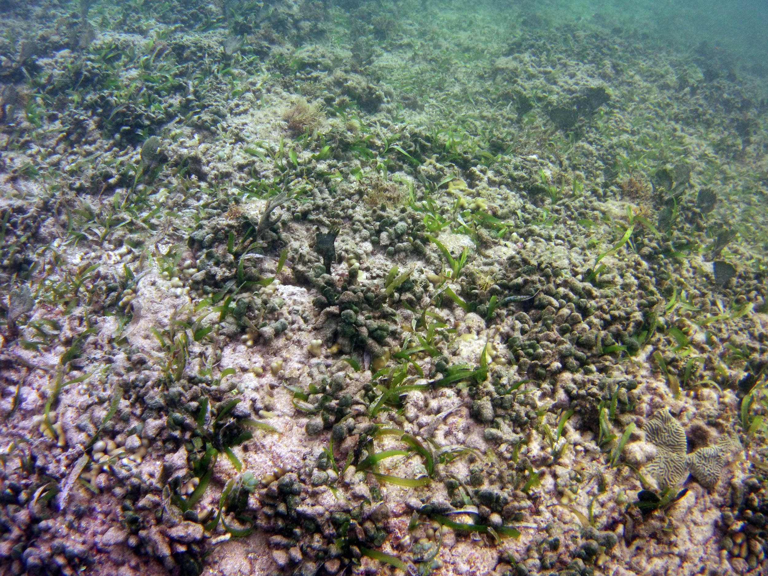 From the field notes for the Transect at the final point on the transect (85S, 187 m): “A lot of rubble cemented together Pf [Porites furcata] etc PHOTOS*** 468-519 series, 509 on way back” The only photos that are retrievable are those below, most at 85S.