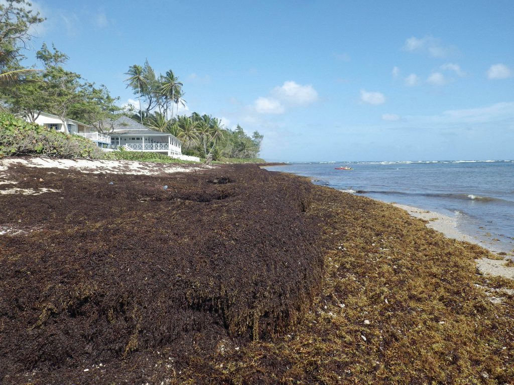 A  major change at Bath when I conducted surveys there in 2015, compared to my last previous visit, in 2011: massive accumualations of Sargassum weed on shore and a thick floating mat of Sargassum weed from shore to about 50 m from shore. As well, even over ‘the platform’ further out, water was green, presumably from decomposing Sargassum/stimulation of planktonic algae.