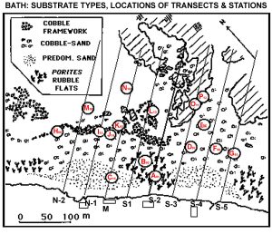 The loss of the cobble-framework substrate at the seaward fringe of the Bath bed, and accumulation of similar materials inshore must be attributable to the severe disturbance described by a local resident.