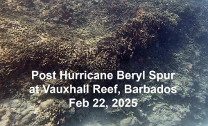 2025: Hurricane Beryl (June 30/July 1, 2024) had massively disrupted the once high living coral cover of Vauxhall Reef spurs (Observations Feb 4 to Apr 2, 2025)