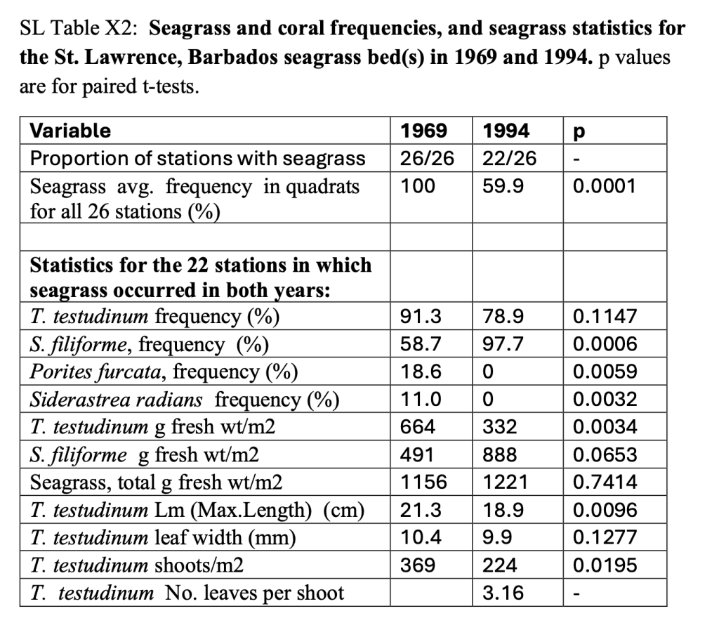 *Lotus Vermeer, 2000. Changes in seagrass growth and abundance of seagrasses in Barbados, West Indies, PhD thesis, Dalhousie University. See Ch 5.