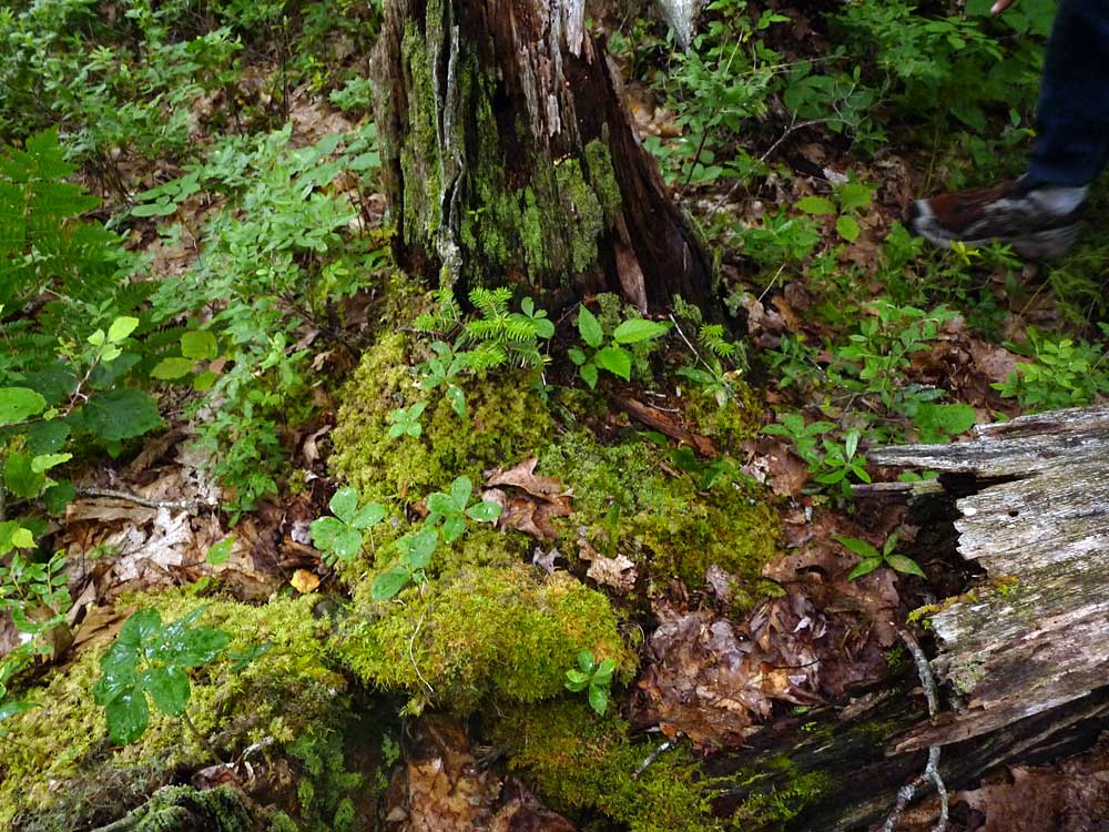 - largely lacked yellow birch; some big tooth aspen present; more paper birch; white pine was noticebably absent in the areas we walked through ( it was also absent at the old growth stand)