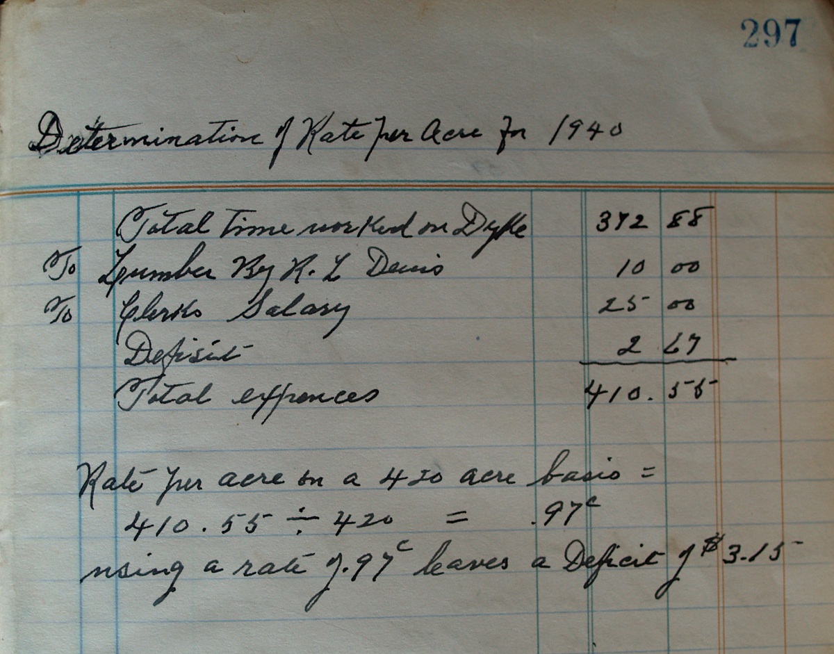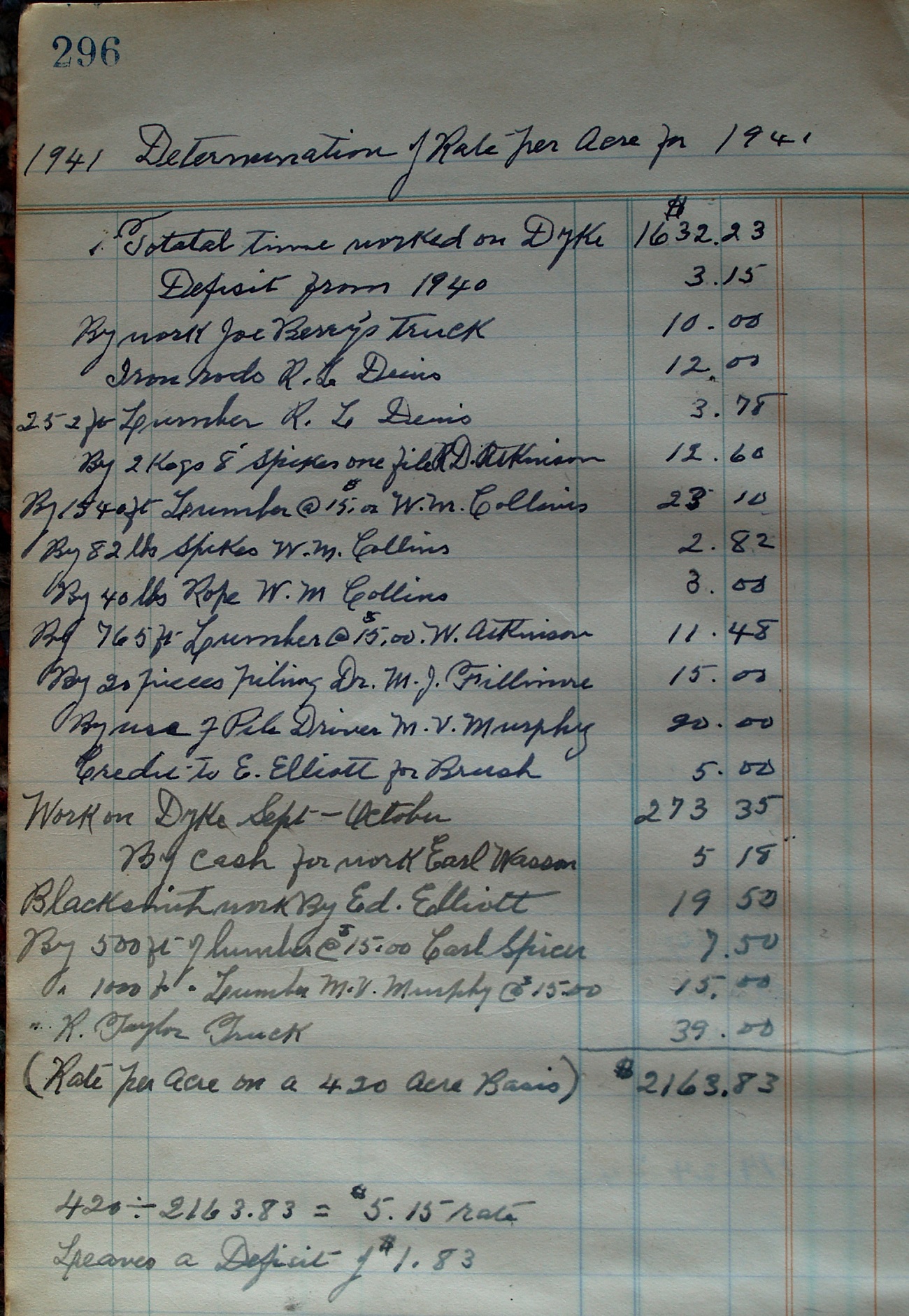 Determination of Rate Per Acre for 1941. Also mention of piling, pile driver and brush.