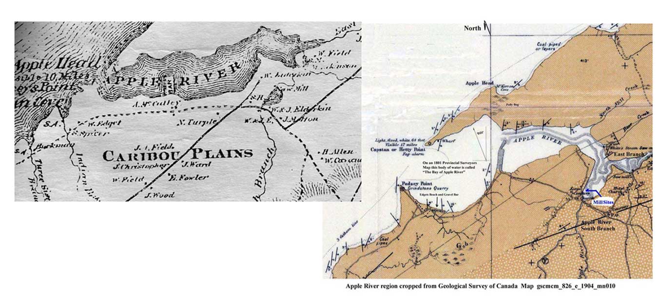 Below and on the right is a section of a 1904 Geological Survey of Canada Map. The full version of this map shows all mills operating in 1904.