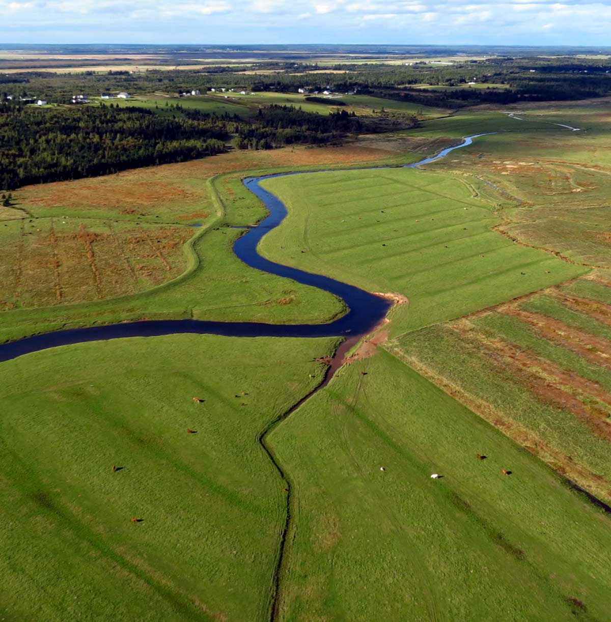A dyked salt marsh south of Amherst near the salt mine. The view is south west and the Maccan River in the background.