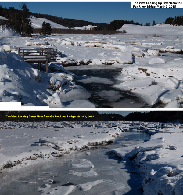 Fig.11:Ice Cakes up river at Parrsboro Harbour, Nova Scotia on March 3, 2015.This yead very little water was sufficiently ice free to allow sea birds to