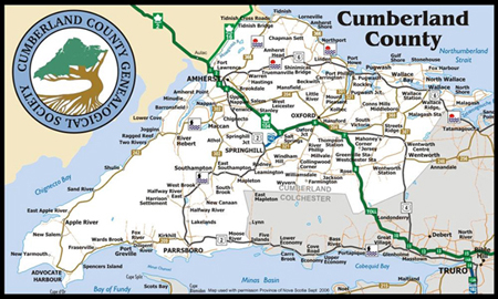 Fig.1:The Chignecto Peninsula and Cumberland County are both located in Northern Nova Scotia, Canada. The Apple River Mill, where