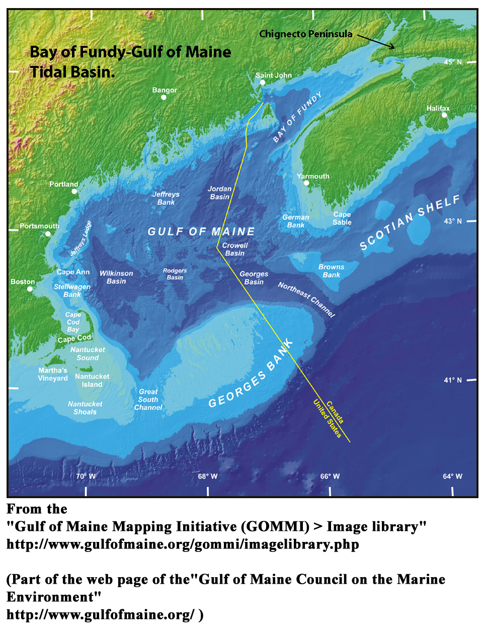 pulse enters the Gulf of Maine, a large back and forth tidal oscillation is setup in the Bay of Fundy-Gulf of Maine Basin.