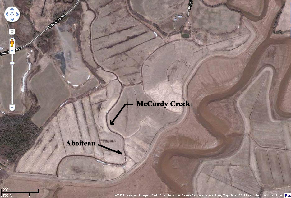 Google Satellite Image of McCurdy Creek Showing the Location of the Aboiteau